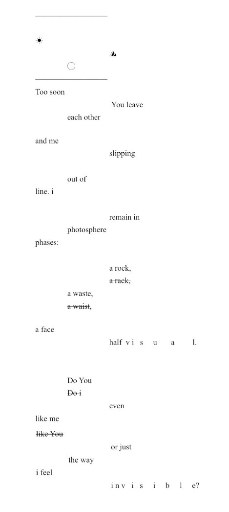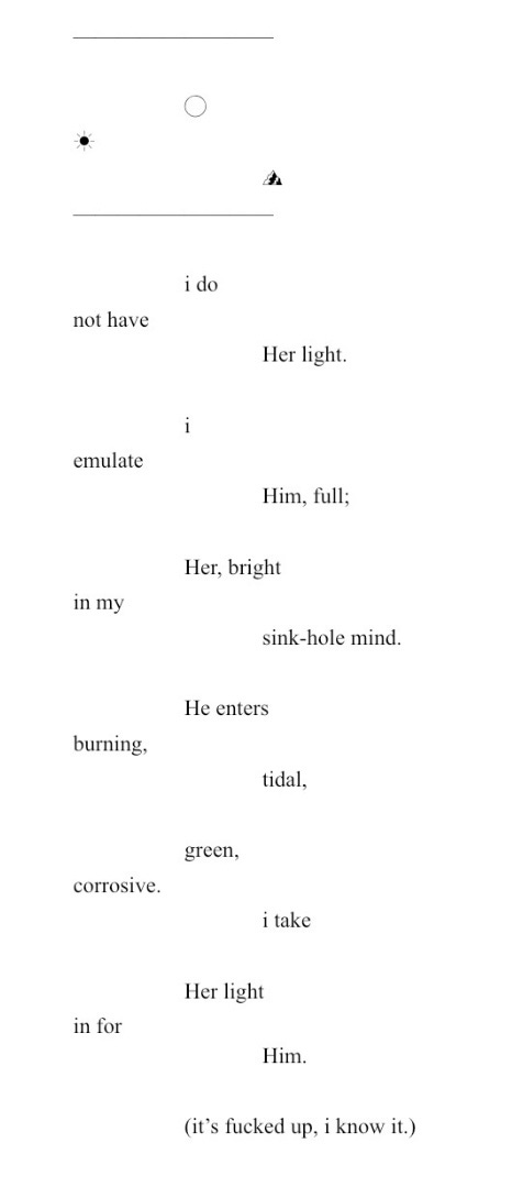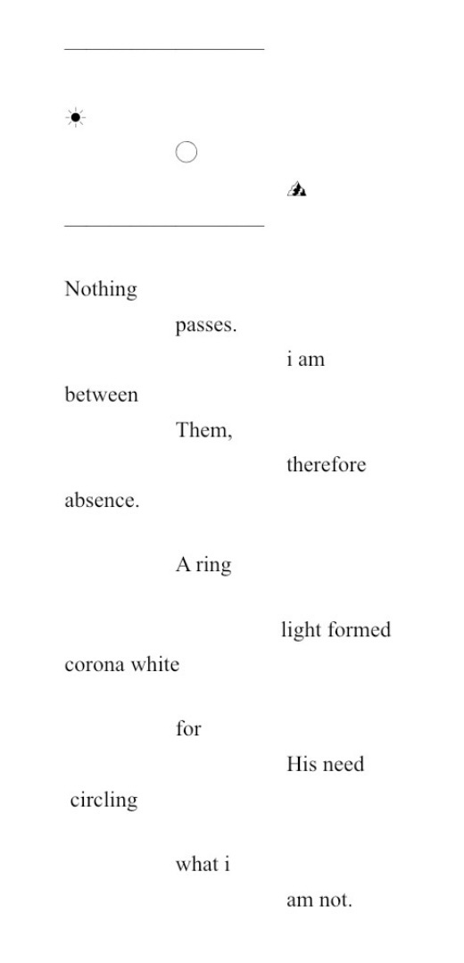 Lass, this poem is heavy. It tricks you at first and you think it’s this sweeping astronomical romance, but then you realize it’s actually about the "machinery" of it all. The Sun and the Moon are there acting like lovers, but they aren't actually choosing to be together, they’re just stuck in this orbit they can't escape. It’s gravity, not chemistry. It's kismet. But the role that's really brutal is the narrator. You write them like they think they’re part of the relationship, a neglected third in the mix, but they aren't a partner at all. They aren't invisible by mistake, they’re invisible by design.